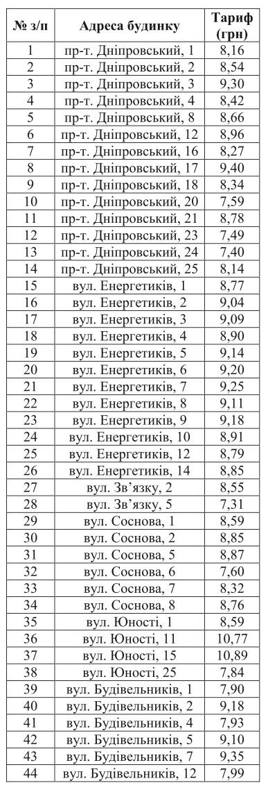 У кожного будинку свій тариф, з яким Ви можете ознайомитись у таблиці.